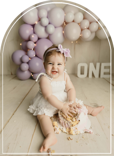 There are two options for scheduling your baby’s cake smash session; close to their birthday to capture exactly as they are during their birthday month, or 4-6 weeks in advance to ensure your final gallery is delivered in time for their big day. After you select your package, you will